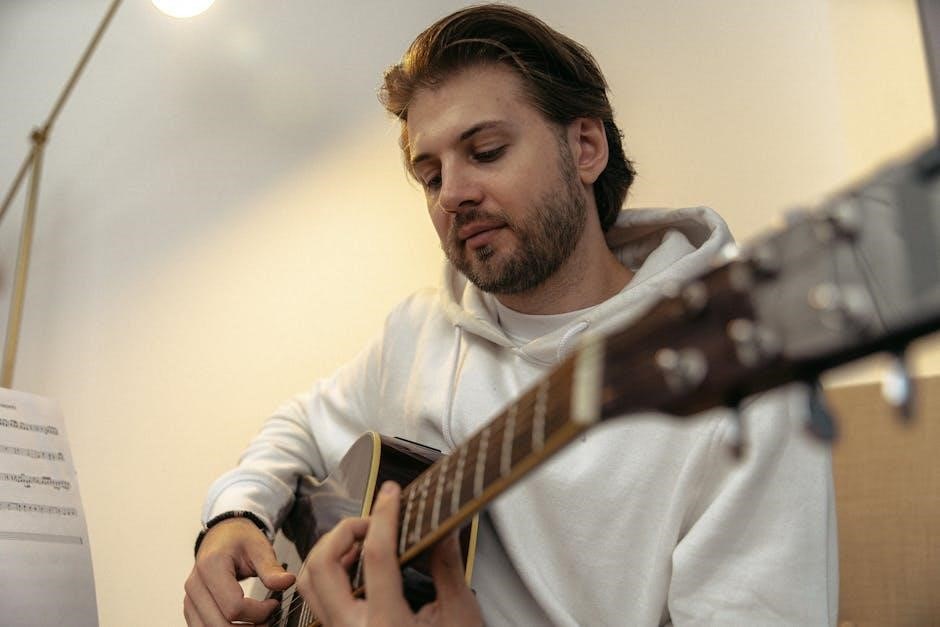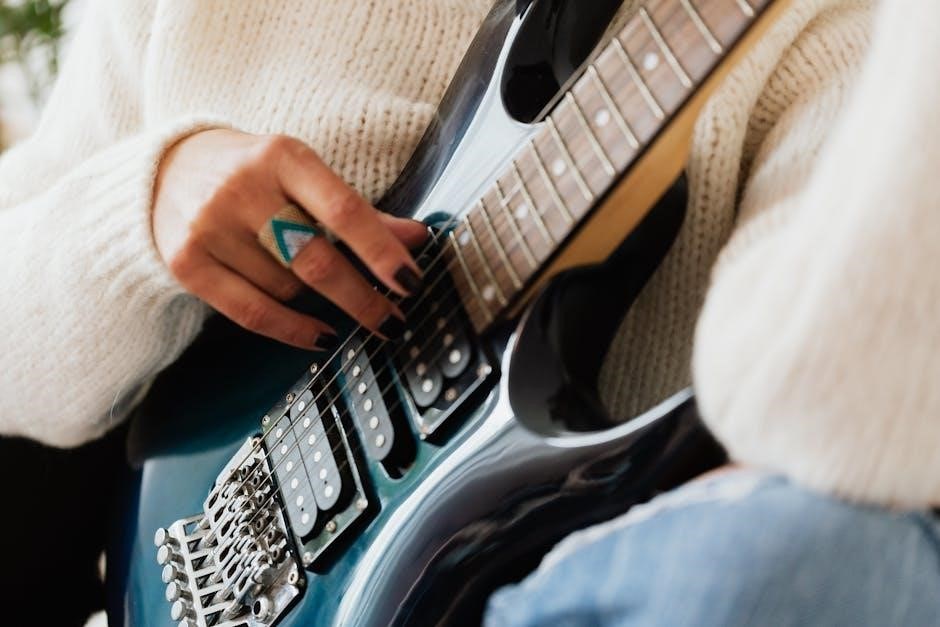 The benefit lies in focused effort; instead of randomly playing‚ a routine directs attention to areas needing improvement. This targeted approach‚ whether a 30-minute daily session or a more extensive schedule‚ ensures all essential skills – technique‚ chords‚ and musicality – receive adequate attention. A weekly guitar practice schedule‚ downloadable as a PDF‚ provides a visual roadmap‚ promoting discipline and accountability.